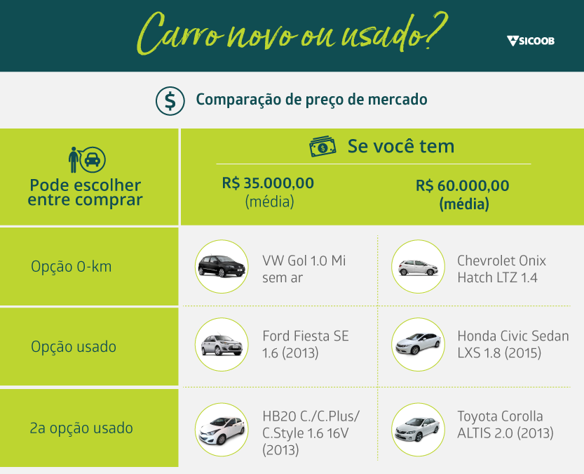 Ou seja, se você quiser economizar, o veículo usado é mais indicado. Ou, se não abrir mão de um carro novo, precisará optar por um veículo mais modesto, pelo mesmo preço que pagaria em um usado superior.