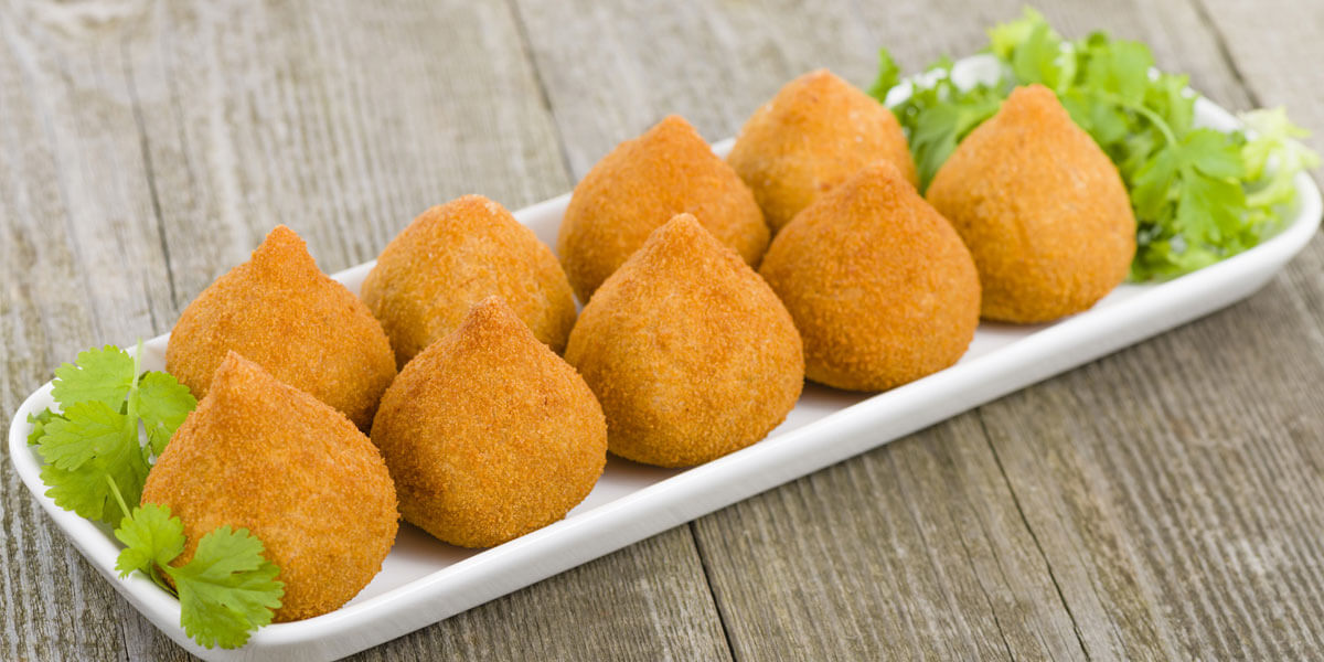 Monte as coxinhas abrindo pequenas porções de massa, recheando com o peru e um pouco de requeijão. Feche as coxinhas e empane-as, passando primeiro na água gelada e depois na farinha de rosca ou panko. Aí é só fritar em óleo bem quente e escorrer em papel toalha.