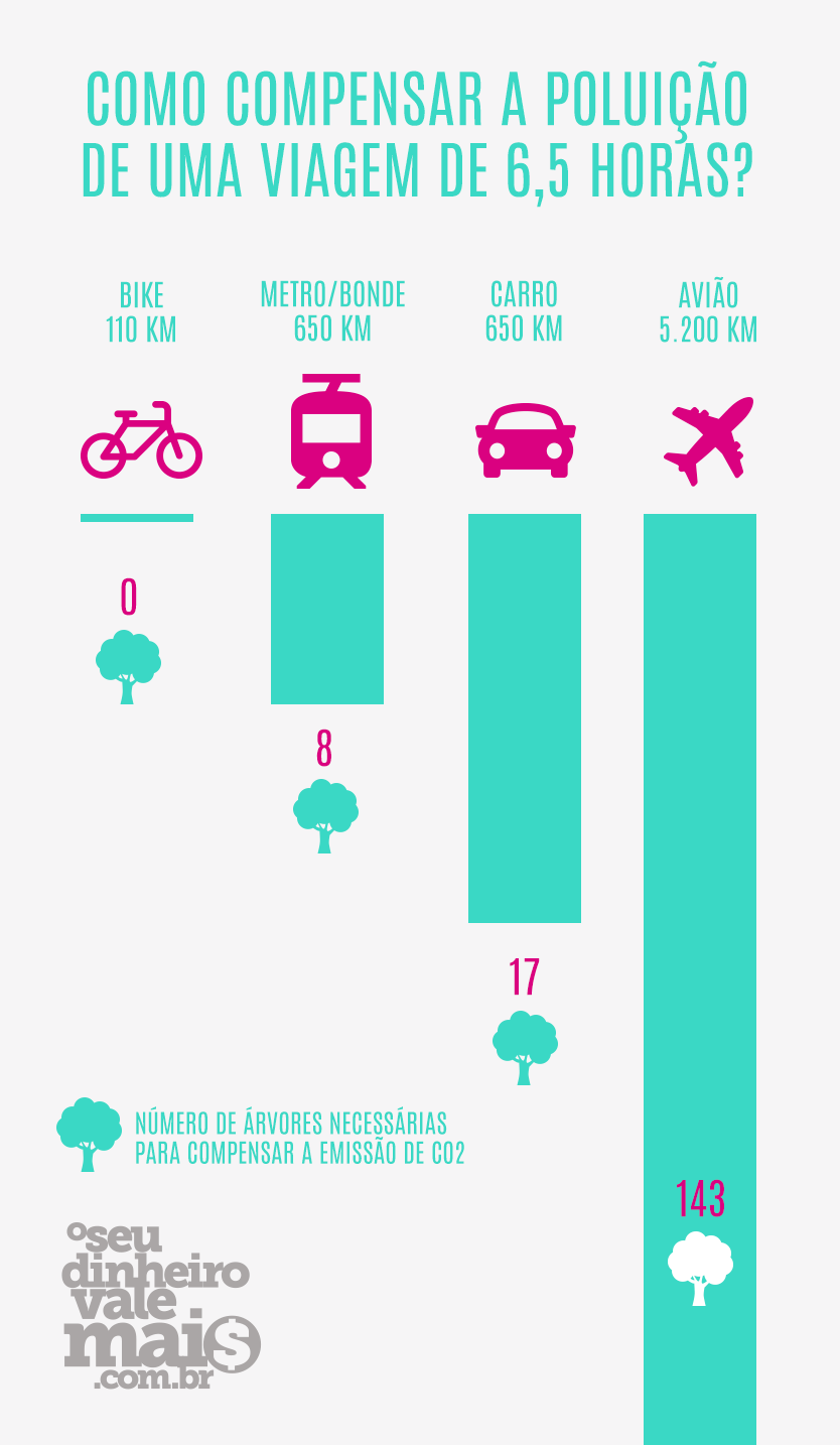 Você já parou para pensar quantas árvores seria necessário plantar para compensar as emissões de CO2 de uma viagem de 6,5 horas, por exemplo? Confira: