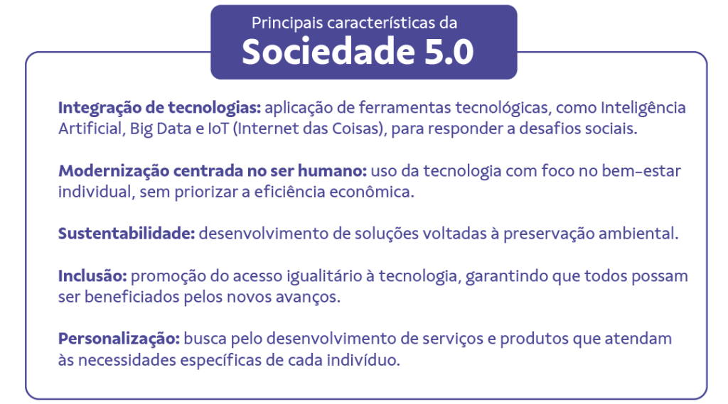 Originado no Japão, o conceito busca colocar a evolução tecnológica a serviço do bem-estar humano. Por exemplo, de acordo com a Sociedade 5.0, a inteligência artificial precisa ser utilizada para melhorar a vida cotidiana, tornando-a mais confortável e inclusiva.